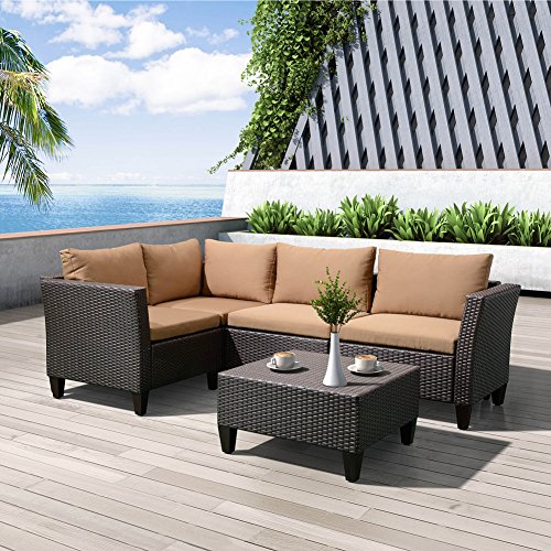 The ART TO REAL Patio Garden Furniture Sofa Set of 5 Pieces Resin Wicker Rattan Sectional Sofa with Cushions, Coffee Table with Tempered Glass, All Weather Resistant if you must have for wooden garden furniture sets 6 seater.