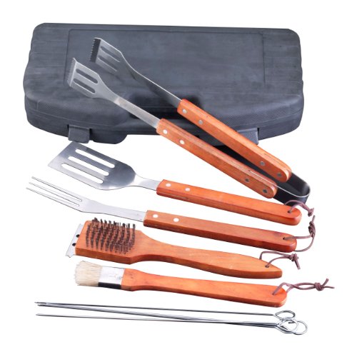 You can read main features below to know more about FlyingColors Stainless Steel Barbecue Tool Set, Plasitc Storage Case, Wood Handle, 9 Pieces.