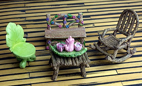 - This Adorable Twig & Flower Miniature Furniture & Tiny Tea Set features Eight Individual Pieces, Great for Inviting All Your Invisible Garden Fairy Friends to Sit and Stay a Spell.