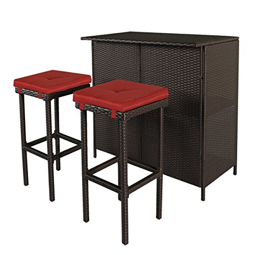 The Cloud Mountain 3 PC Wicker Bar Set Patio Outdoor Garden Backyard Rattan Table & 2 Stools Furniture Set,Brick Red Cushion if you must have for garden furniture sets very.