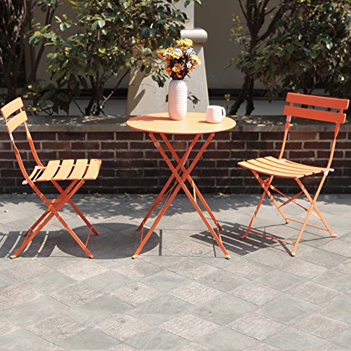 The Grand Patio Steel Folding Outdoor Furniture Set for Bistro/ Patio/ Backyard, Patio Furniture Sets, 3 PCS Set of Foldable Table and Chairs, Orange if you must have for iron garden furniture set.
