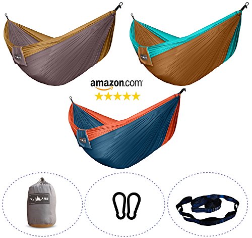 You can read main features below to know more about HOLIDAY SALE Tavorland Camping Hammock - Portable Ultralight Double Parachute Hammock with Free Tree Straps - for Backpacking, Back Yard the Beach Travel.