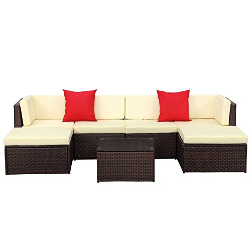 The IKAYAA 7PCS Outdoor Cushioned Rattan Wicker Furniture Set Sectional Patio Couch Sofa Set Ottoman Corner if you must have for garden furniture corner sets.