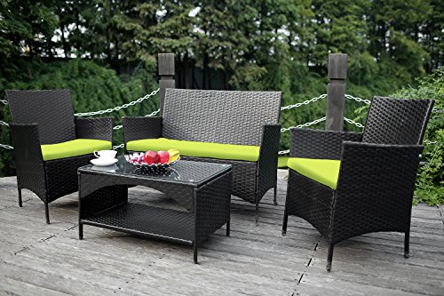 The Merax Outdoor Garden Furniture Set 4 Piece Patio PE Rattan Cushioned Sofa Set LoveSeat and Chair Sofa Furniture Seat (Green Cushion) if you must have for garden furniture set rattan.