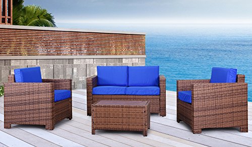 ok,First we want tell about this The Eden Rock Collection - 4 Pc Outdoor Rattan Wicker Sofa Sectional Patio Furniture Set. Choice of Set & Cushion Color (Light Brown / Dazzling Blue Cushions),this The Eden Rock Collection - 4 Pc Outdoor Rattan Wicker Sofa Sectional Patio Furniture Set. Choice of Set & Cushion Color (Light Brown / Dazzling Blue Cushions) is one of many miami garden furniture set who can be your chooice>, this The Eden Rock Collection - 4 Pc Outdoor Rattan Wicker Sofa Sectional Patio Furniture Set. Choice of Set & Cushion Color (Light Brown / Dazzling Blue Cushions) is has alot of advantages.
