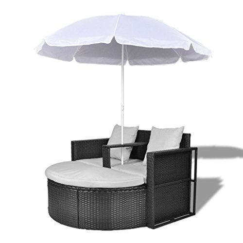The vidaXL Black Garden Poly Rattan Lounge Set with Parasol Outdoor if you must have for garden furniture sets parasol.