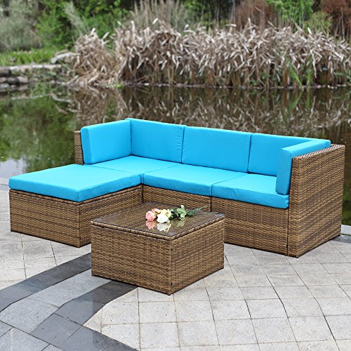 The Zytho(TM) 5PCS Cushioned Outdoor Patio Garden Furniture Sofa Set Ottoman Corner Couch Rattan Wicker + TUV Testing Report UK Stock if you must have for garden furniture sets uk cheap.